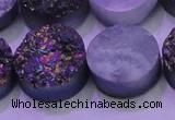CAG8365 7.5 inches 16mm coin purple plated druzy agate beads