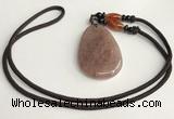 NGP5609 Strawberry quartz flat teardrop pendant with nylon cord necklace